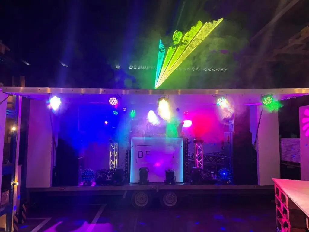 Deejay on Wheels is uniek in zijn soort omdat we binnen 15 minuten licht en geluid op de locatie werkend hebben. Het enige wat daar voor nodig is, is 2x 230volt aansluiting. Ook hebben we voor de binnen feesten een drive-in show.